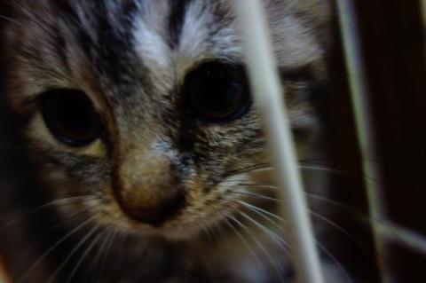 目のぱっちりした、ふわふわなグレータビー柄のお嬢さんです。