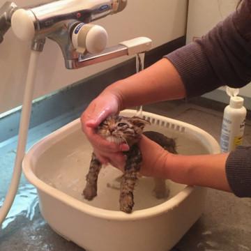 両目が目ヤニで潰れ、動けずにジッと丸まってました。