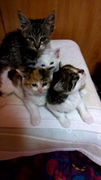 ママ猫は、三匹の子猫を生みましたが、