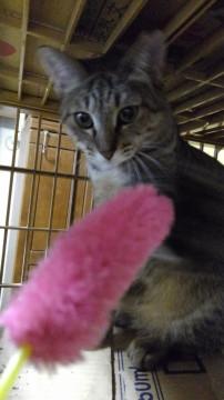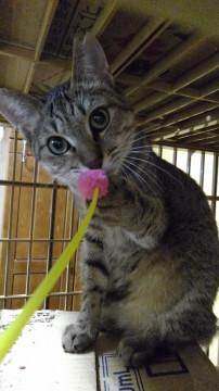 人なれ途上ですが、まだ一歳未満の子猫なので、遊びたがりで、人や猫に興味深々、数か月根気強く付き合っていただいたら馴れる子だと思います。