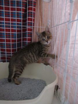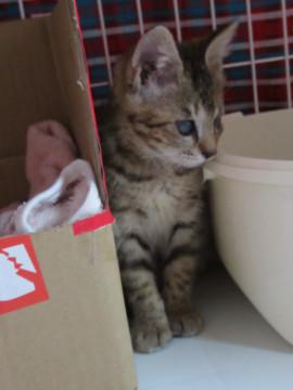 仮名はウェンディーといいます。毛色は明るい色ではっきりしたシマがあるきれいなキジトラさんです。