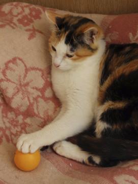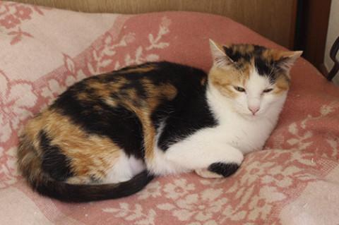 少し縞が入っていますが、はっきりとした三毛柄がきれいです。