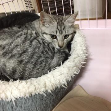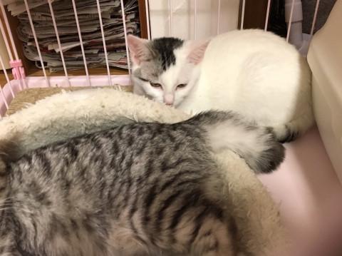 母猫と一緒に行動していたので、当初は警戒心が強かったのですか、だいぶ人間にも慣れてきました。