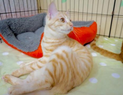 チャトラの中でも、クリアなカラーの色がとても薄いクリームタビー。