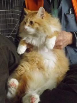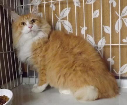 【毛色】 茶白の半長毛。しっぽは長くてフサフサ