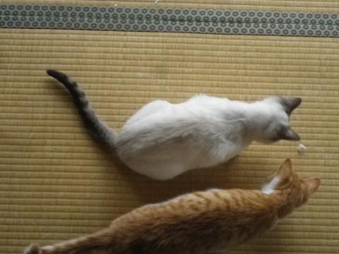 (他の猫の匂いが付いてる方に対しては警戒するようです)