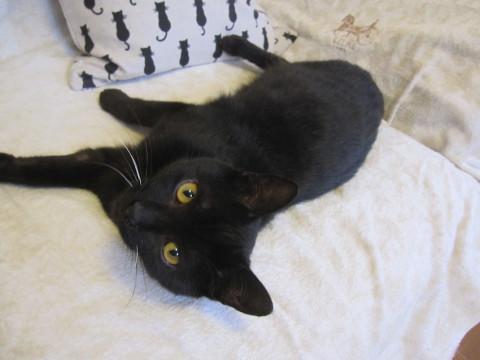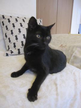 可愛い黒猫ぽっかくんです。大変人懐こく、抱っこもいやがりません。また子猫らしい活発さはありますがおっとりしています。黒猫なのにお髭は白です。他の猫ちゃんにもフレンドリーです。