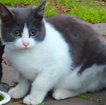 ☆グレーのハチワレの女の子もいますがまだ怖がりさんです。真っ直ぐしっぽのべっぴんさん。