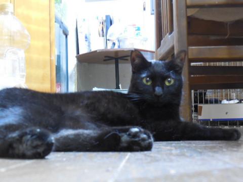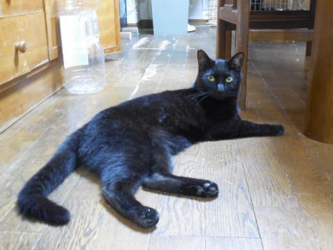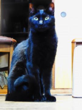 尾っぽが長くすらりとした黒猫くんです。