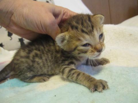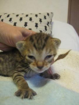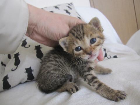 かわいいパステルきじとらおちかちゃんです。小さいので性格ははっきりとはわかりませんが、ミルクから育てているので大変人懐こくなります。