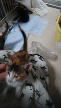 ある旅館で保護されました。母親はつかまらず、旅館では飼えませんので、うちで預り、人馴れと検診、2ヶ月になるまで、兄弟たちと遊びながら里親さんを探すことになりました。
