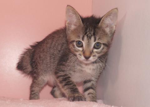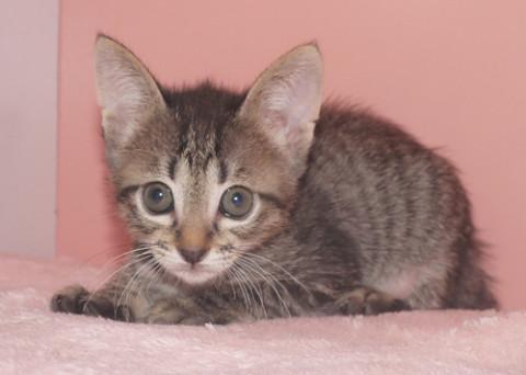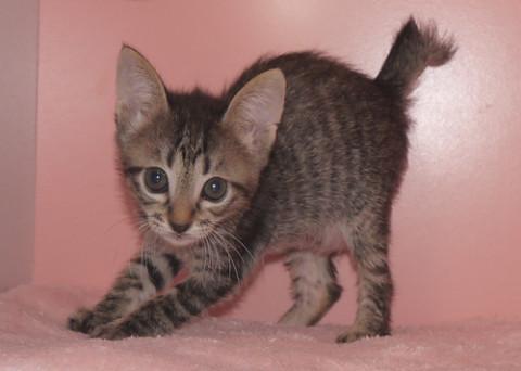 キジトラ♀キャロットちゃん 尾短 大人しく利発な兄妹の中で一番の甘ったな子