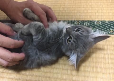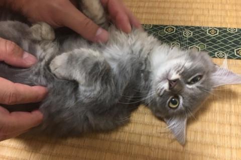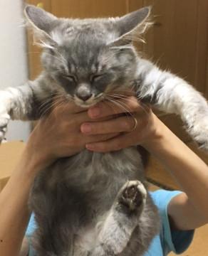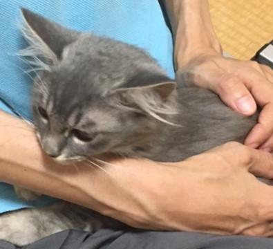 ふわふわの長毛ちゃんです。毛色は、基本はグレーですが、白い部分もあります。まだ警戒心があり、なでようとするとはじめに「シャー」と威嚇しますが、そのまま撫でると、おとなしく気持ち良さそうにしています。噛んだりなどの凶暴性は、保護当初からありませんでした。抱っこもさせてくれます。ただ、やはりまだ警戒心がありますので、そのことをご了承いただける方からのご応募をお待ちしています。