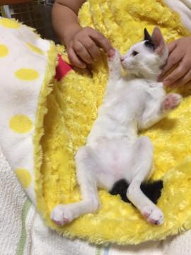 スーパーの駐車場に段ボール箱に入れて捨てられていました。生後1週間の子猫4匹、迷っている時間もなく緊急で保護しました。母親から早くに離れたせいか、その後も体調がよくなったり悪くなったりでしたが、ようやく元気も安定してきましたので、新しい飼い主さんを募集いたします。