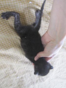 かわいい赤ちゃん黒猫、じょいなーちゃんです。クリクリお目目がキュートです。ミルクから育てているので大変人懐こく、何をされてもなすがまま、さわっただけでごろごろ言ってくれます。