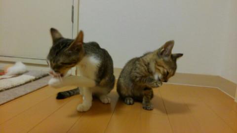 大きさは白キジちゃんが少し大きいですがそんなに大差はありません。
