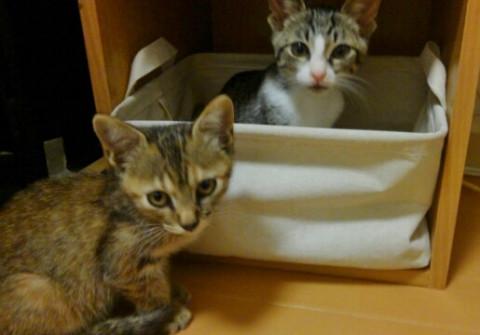 二匹とも違う日に車の多い道路の隅にいて危なくて保護されました。