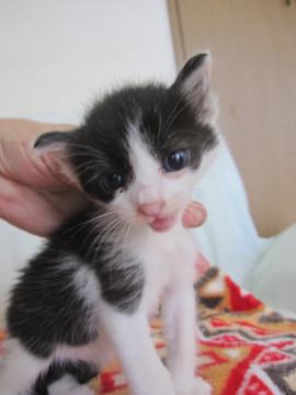 かわいい黒白、大きなお目目のまーがれっとちゃんです。ホルスタインのような模様がキュート。ミルクから育てているので大変人懐こく、活発に遊びます。