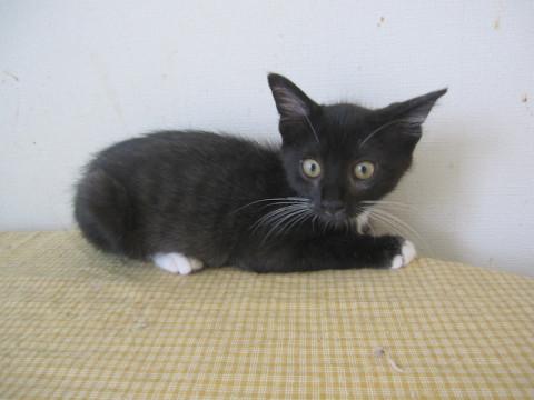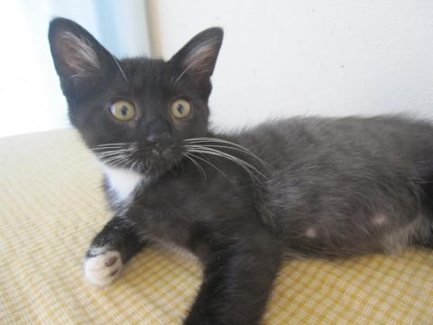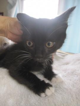 かわいい黒白、びっくりお目目のきりんくんです。咽喉元のスカーフのような、そして手足のひずめのような模様がとってもキュート。性格は少しびびりですが、人懐こいです。他の猫ちゃんにもフレンドリーです。