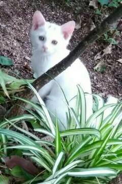 ほとんど白ですが、おでこにグレーの2本線がチャームポイントです。