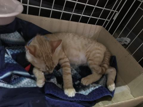 某工業団地で、お腹を空かせてる野良達の中に居ました。手術した時、体重が970g。
