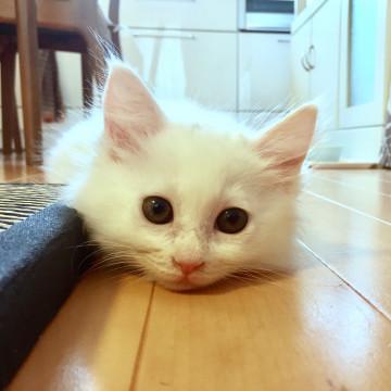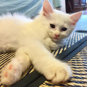 白の長毛でふわふわの毛が可愛いです。