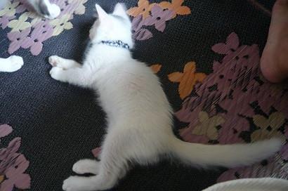犬にも大きな猫、子猫、人間にも全く動じません。
