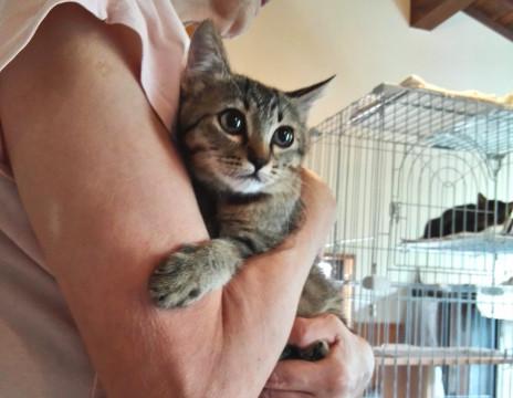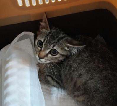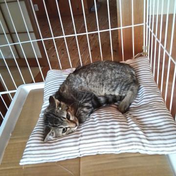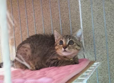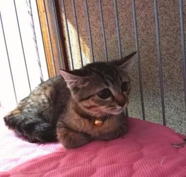 以前、繁殖制限したスーパーの駐輪場のところに野良猫のお母さんがやって来て、子育てしていました。母猫は避妊してリリースし、子猫は保護して里親さまを募集することにしました。生後2ヶ月半~3ヶ月くらいだと思われます。