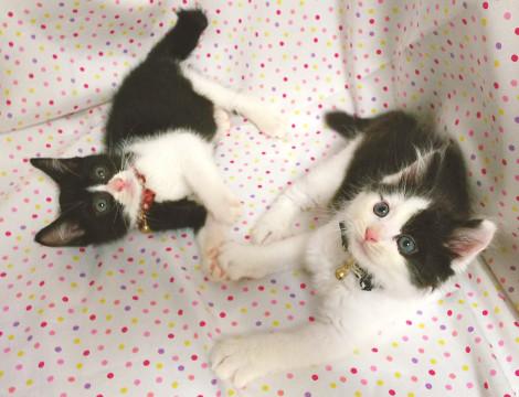 人にかまってほしくてチョロチョロとじゃれついてくるのがとてもかわいい2匹です。