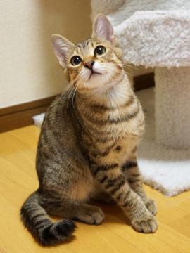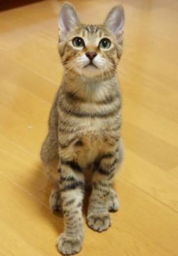 【毛色】 キジトラ。しっぽは長くてまっすぐだが、先が少しカギになっている