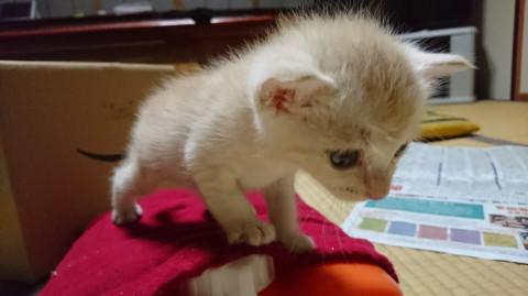 9月初旬に外で濡れているところを保護しミルクが飲めるまで元気になったので、一度は里親さん宅へ引き取られました。