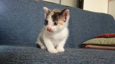 元気な女の子の三毛ちゃんです。ちょっとお転婆さんかもしれません。オシッコはトイレで出来るようになってきました。