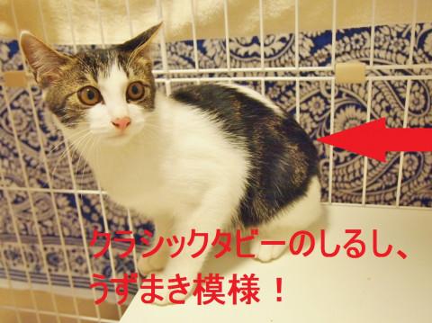 【毛 柄】普通のサバ白かとおもいきや、よく見ると縞模様がクラシックタビー!