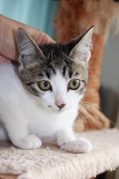 かわいいキジ白、いっぷくくんです。性格はとっても人懐こく、ややおっとりしていますが、子猫らしい活発さもあります。