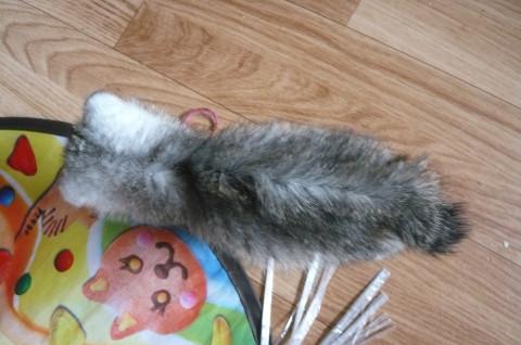 サバトラちゃんでグレーの縞々尻尾は曲がっています