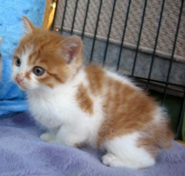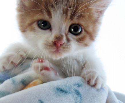 ふわふわの茶白の毛はさわり心地のよい柔らかさで、尻尾は長くまっすぐです。活発でケージの中ではじっとしているより元気に動き回っています。人に抱かれても嫌がる様子はなく、新しい家族との生活にもすぐ馴染めるでしょう。