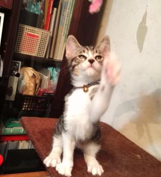生後10日目くらいから人の手で授乳されたため、人のことを親だと思っています。人から世話を受けることが自然で大変に人馴れしています。快活ですが、性格はおっとりさんのようです。いつも兄弟一緒に戯れています。