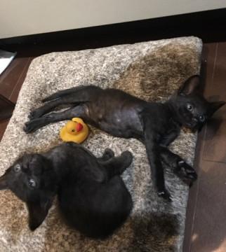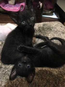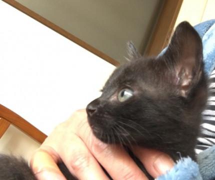 兄弟で一番大きい海堂です。肩によじ登るしミルクで育てていますので人馴れしています。尻尾は真っ直ぐで全身黒。猫の中でも有名な甘えたの黒オスです。出来れば兄弟誰かと組み合わせで希望します。