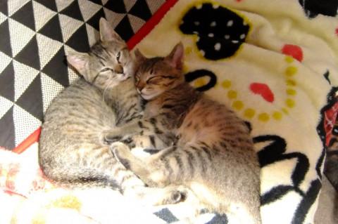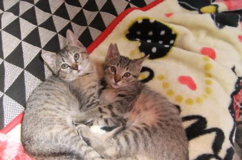 地域猫現場で保護した人馴れしている女の子です(写真、向かって左)。