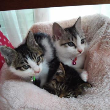 性格は、三匹の中でいちばんおとなしく、おっとりさんです。手足が少し短めな感じで、まぁるくてふんわりしています。