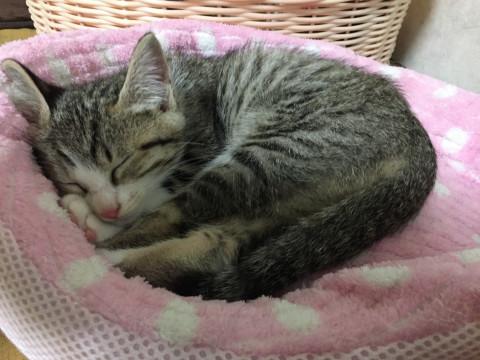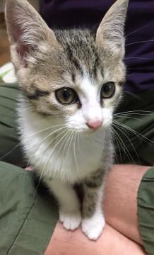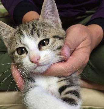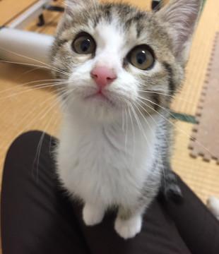 子猫らしくやんちゃです。人が大好きで、姿が見えなくなると、にゃーと鳴きます。猫じゃらしで遊ぶのが大好きです。