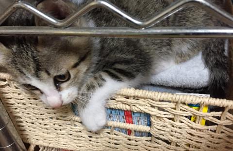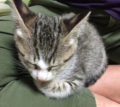 子猫を保護して飼い主さんを探していた方が、子猫と先住猫ちゃんとの相性が悪い為、保護が難しくなり、うちで預かりました。