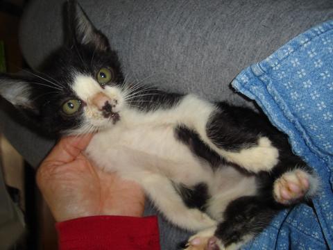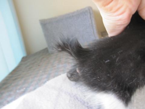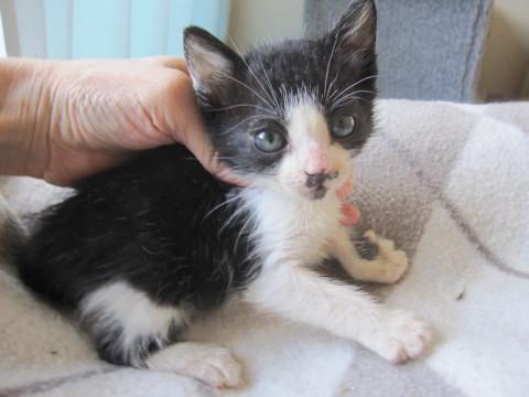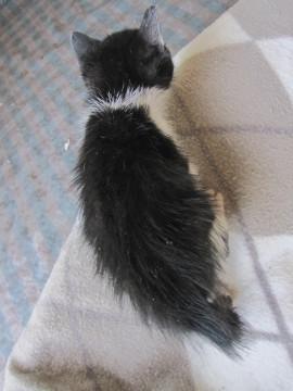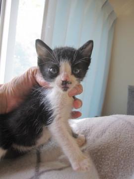 かわいいクリクリお目目の黒猫、かげきくんです。短~いしっぽがとってもキュート。性格はまだ小さいのではっきりわかりませんが、元気で活発そうです。ミルクから育てるので大変人懐こくなります。