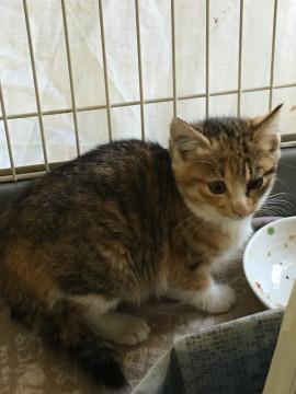 三毛のようなサビ白のような、キジ白のような変わった柄です。とても可愛い子です。