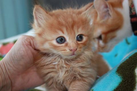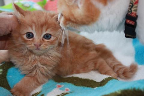 珍しい女の子の茶トラ、きゃんでぃちゃんです。半長毛になると思います。人慣れもしており、兄弟の中では一番活発です。