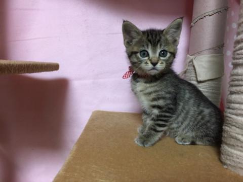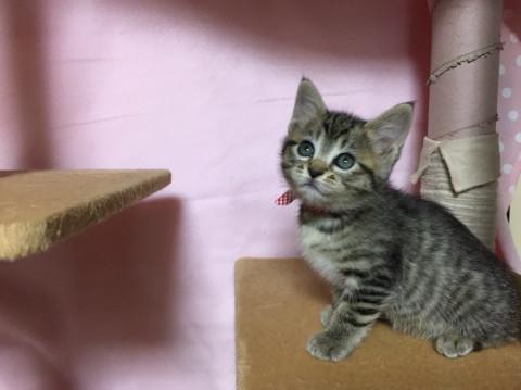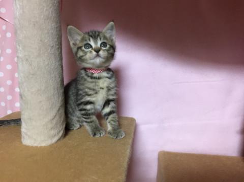 真ん丸な顔に愛くるしい顔立ちの女の子です。とても甘えん坊です。成猫とも友好的に日々を過ごしております。