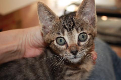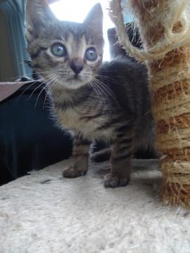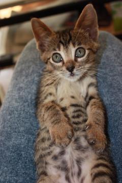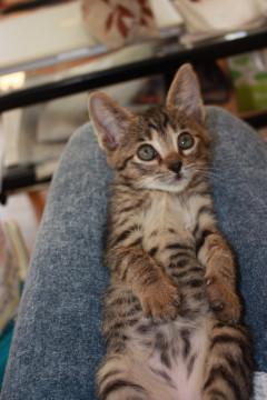 かわいいキジトラ、かさねくんです。ミルクから育てているので性格は大変人懐こく元気で活発です。
