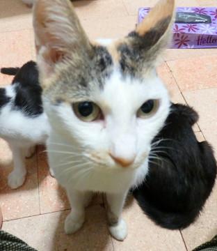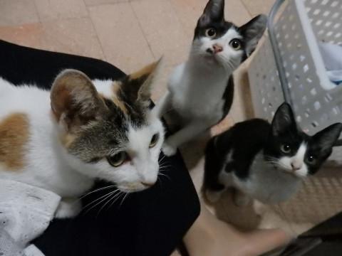 子どもの半分子ちゃんと弟の八割れ君、母猫のけけちゃんを預かっています。子ども達は、それぞれトライアル開始しました。