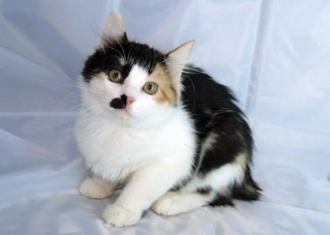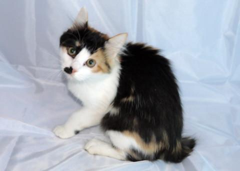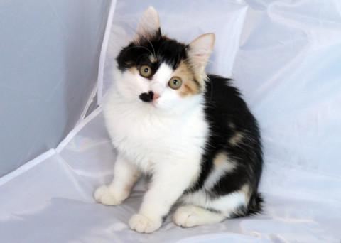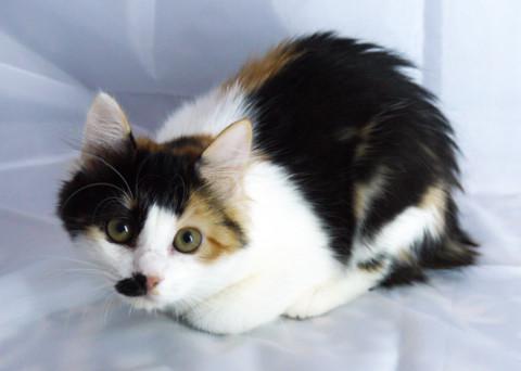 三毛♀ライラックちゃん 尾中長 毛足が長めな長毛風の子 人大好き抱っこ大好きなベタベタの甘ったれ