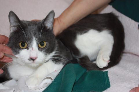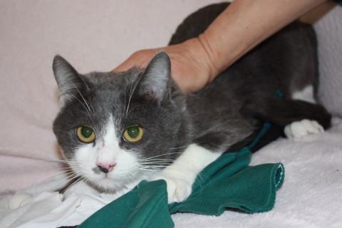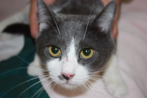 可愛い灰白のかん君です。保護主様の飼い猫ちゃんにが受け入れてくれないため、現在半屋外の小屋の中で生活しています。人に甘えることができなかったので、あまあまとまではいきませんが、保護主様には大変慣れていて、抱っこもさせてくれます。新しい環境では少し時間をかけて慣れさせてやっていただきたいです。